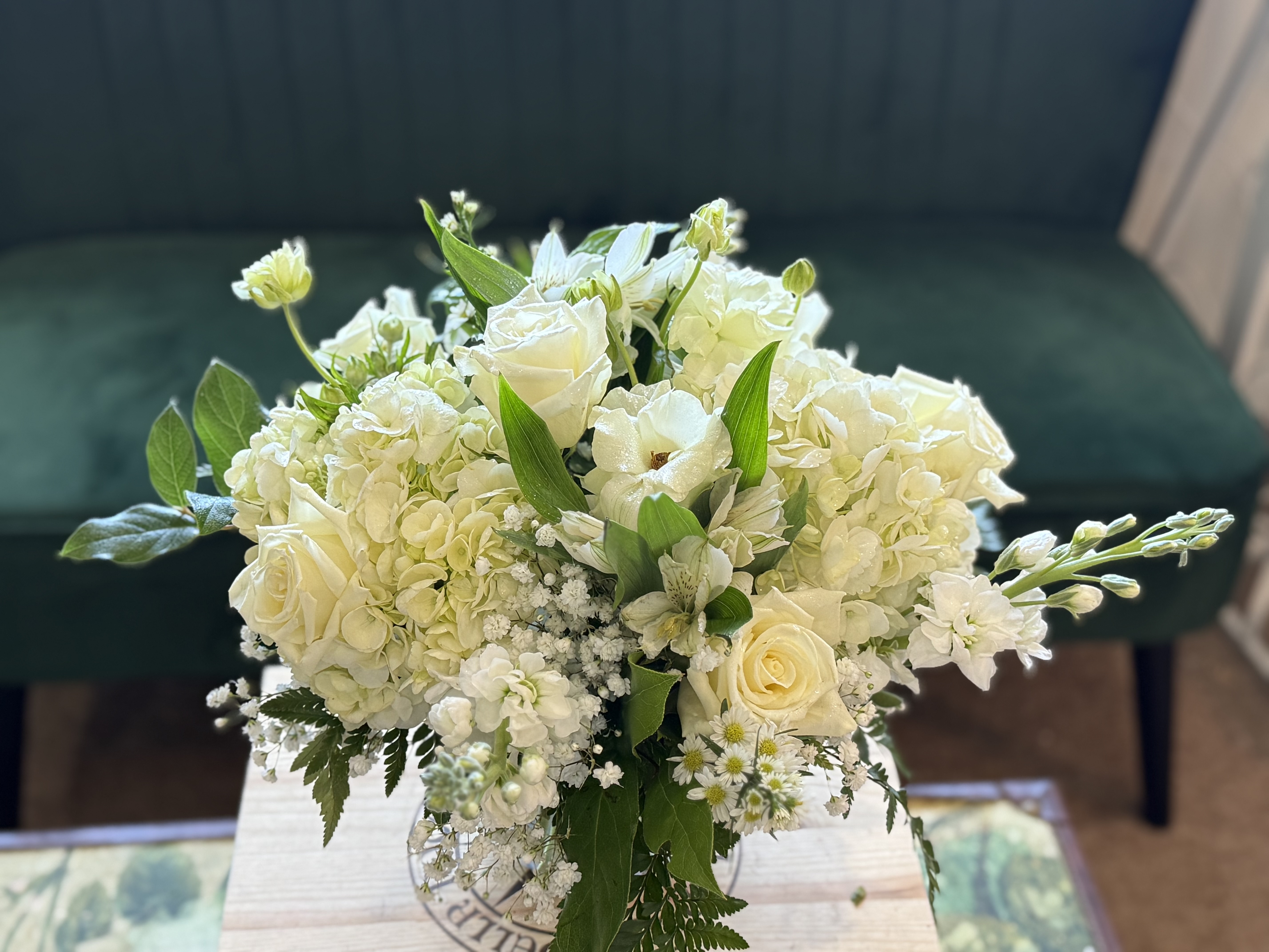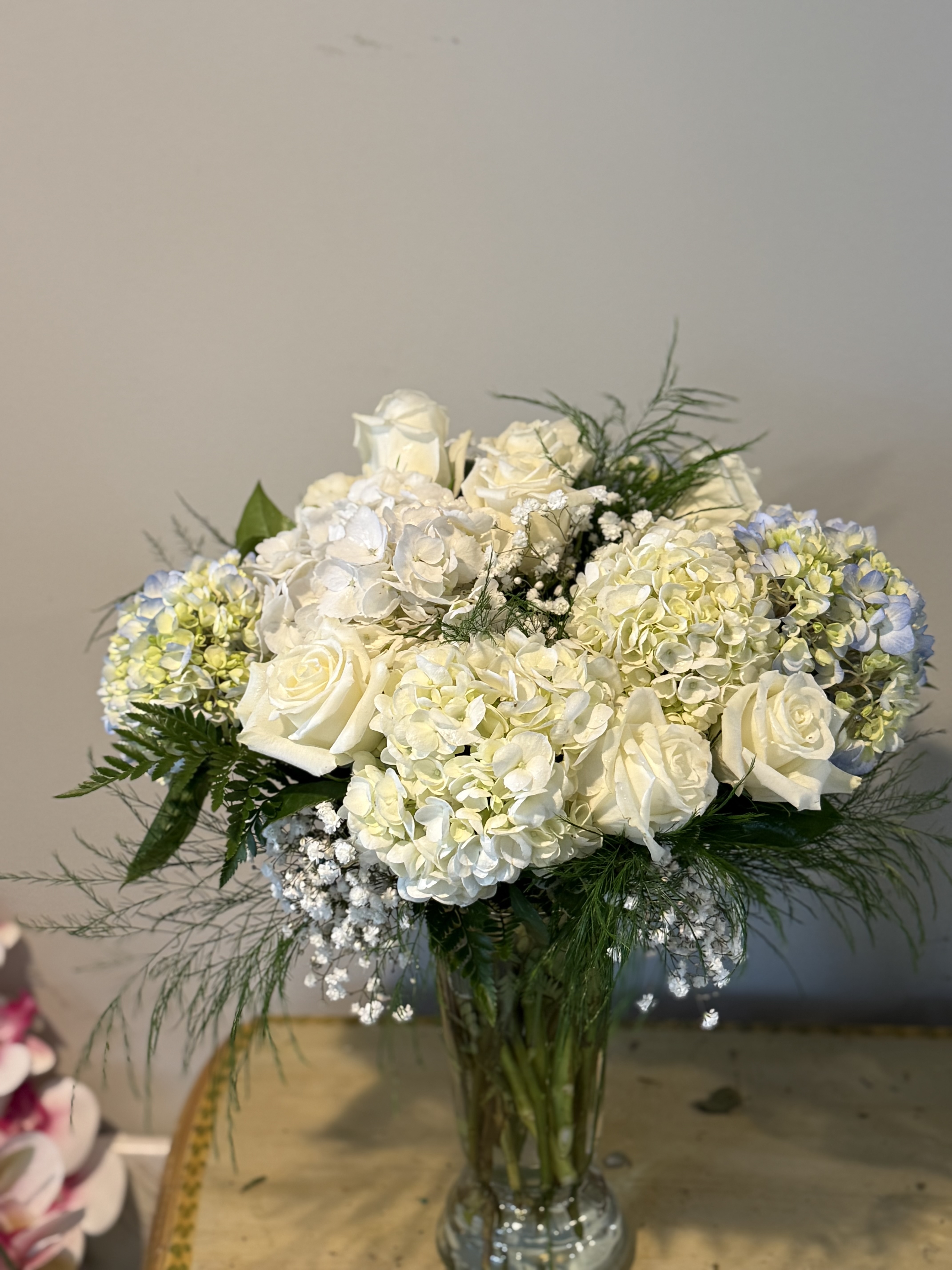 The flowers were perfect! They actually were full of flowers not just green fillers. There were only a couple arrangements and this one was placed front and center on alter. Highly recommended this shop ! So pleased, thank you.